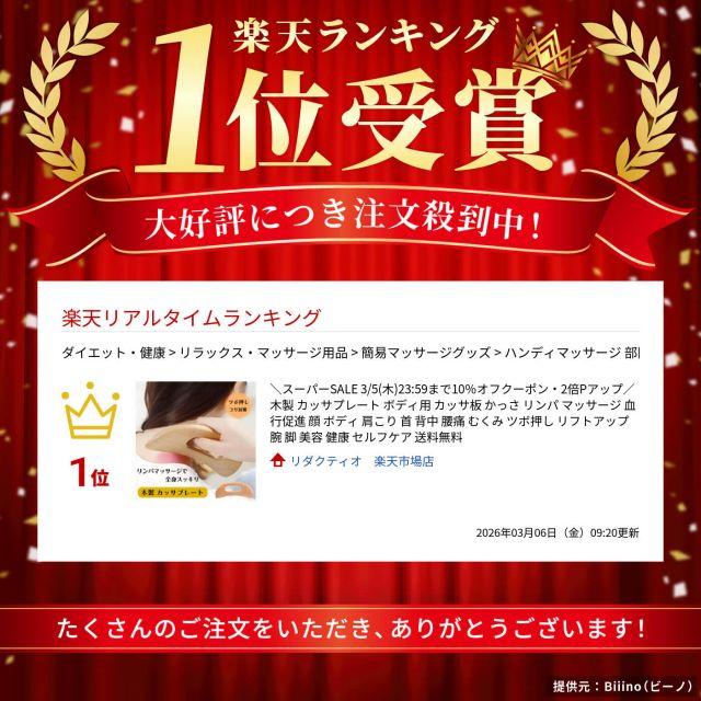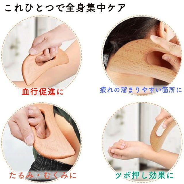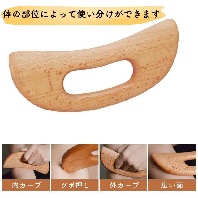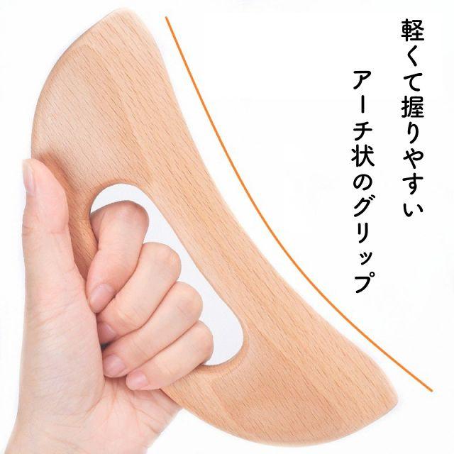 ◎腕やデコルテ、腰や肩や顔など、普段マッサージを受けて心地よいと感じる箇所に滑らせるだけで、簡単にリンパマッサージができる木製カッサ。全身を柔らかくほぐしてくれるリラクシング習慣のためのウッドマッサージャーです。軽くて持ちやすいアーチ状のグリップは握りやすく、力強く効果的にリンパを流せます。天然木製ブナ材を使用しているため、肌に優しく、滑らかにお使い頂けます。これひとつで体の部位で使い分けができ、全身に対応できます。内カーブはおでこや頬の広範囲に。先端のエッジで目のまわりや細かな部分、ツボ押しに。外カーブは背中、脚部などしっかりマッサージしたい部分に。心地よい刺激で、血行やリンパの流れを良くし、健康なボディ習慣をサポートします。