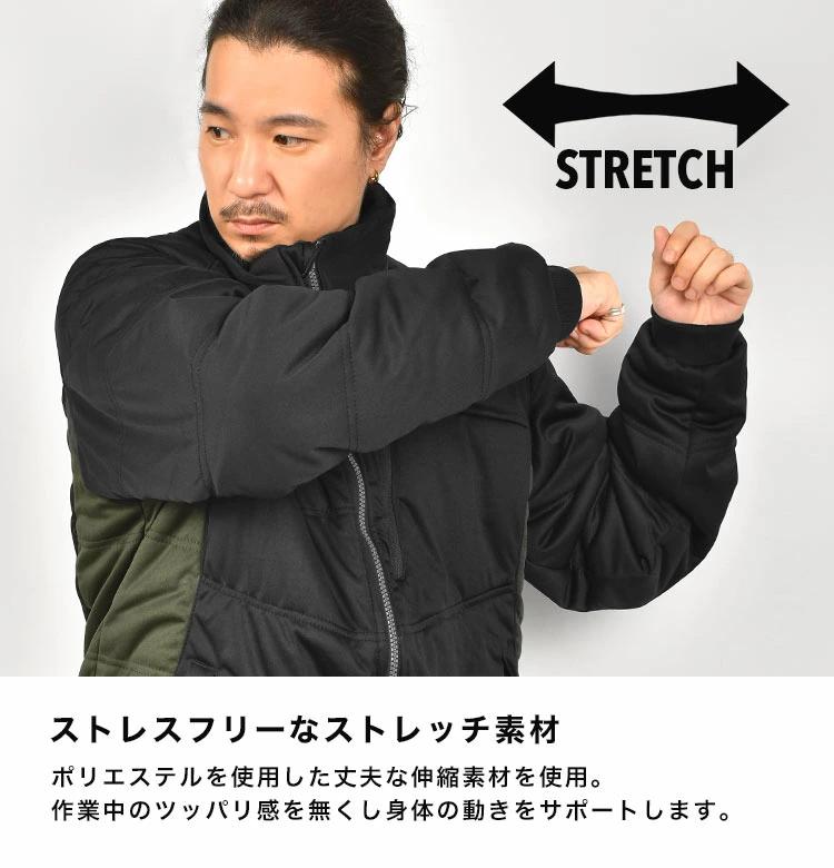 寒風を防ぎ、作業時のスムーズな動きをサポートするストレッチの効いたジャケット。