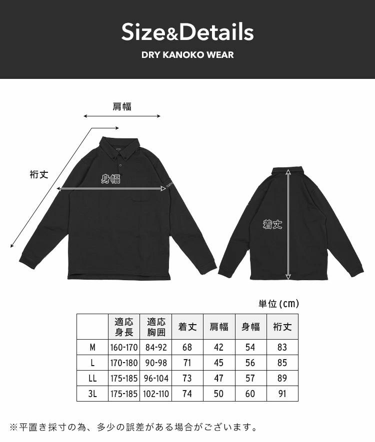 【ドライカノコ長袖ポロシャツ】作業用に最適な機能性を備えたドライカノコ長袖ポロシャツ。紫外線カット機能により、強い日差しから肌を守りながら、吸水速乾機能が汗を素早く吸収・乾燥させ、快適な着心地を保ちます。軽量で動きやすい素材を使用しており、長時間の作業もストレスフリーです。脇下には消臭テープ付きなので業中の不快な臭いを軽減し、清潔感を維持できます。また、左袖にはリフレクターロゴが付いており、夜間や暗がりでも視認性を高めるため安全性にも配慮されています。鹿の子素材を採用しているため、肌触りが良く、通気性も抜群です。サイズ展開も豊富で、Mから3Lまでご用意しておりますので、様々な体型に対応可能です。作業着として着用はもちろん、スポーツやアウトドア、日常使いにも適しています。