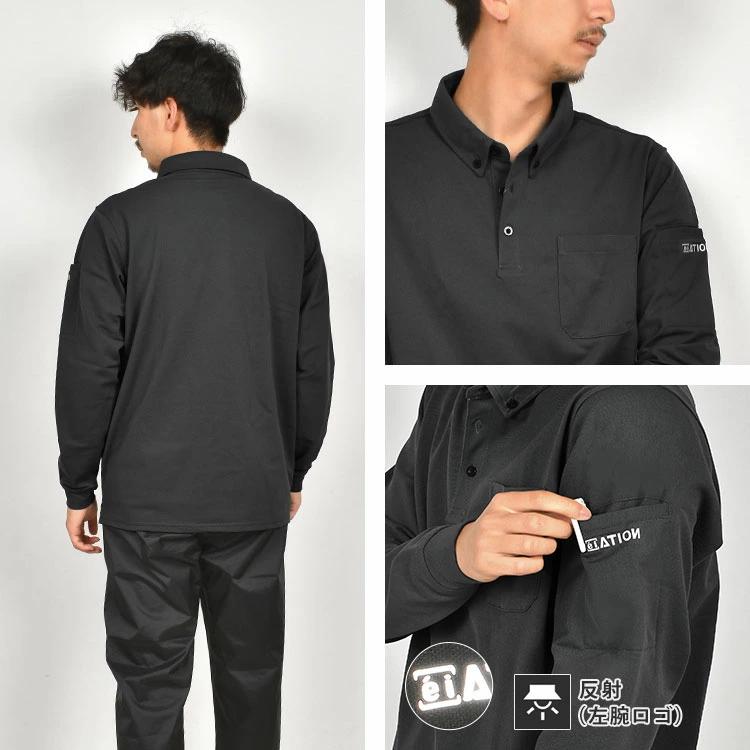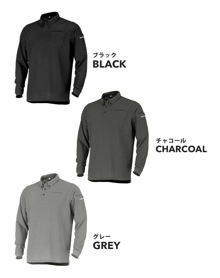 【ドライカノコ長袖ポロシャツ】作業用に最適な機能性を備えたドライカノコ長袖ポロシャツ。紫外線カット機能により、強い日差しから肌を守りながら、吸水速乾機能が汗を素早く吸収・乾燥させ、快適な着心地を保ちます。軽量で動きやすい素材を使用しており、長時間の作業もストレスフリーです。脇下には消臭テープ付きなので業中の不快な臭いを軽減し、清潔感を維持できます。また、左袖にはリフレクターロゴが付いており、夜間や暗がりでも視認性を高めるため安全性にも配慮されています。鹿の子素材を採用しているため、肌触りが良く、通気性も抜群です。サイズ展開も豊富で、Mから3Lまでご用意しておりますので、様々な体型に対応可能です。作業着として着用はもちろん、スポーツやアウトドア、日常使いにも適しています。