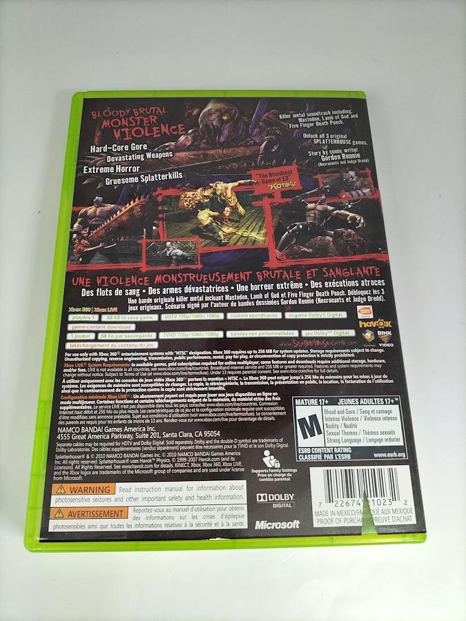 XBOX360ソフト SPLATTERHOUSE NAMCO XBOXソフト NAMCOSPLATTERHOUSEXBOX360ソフト