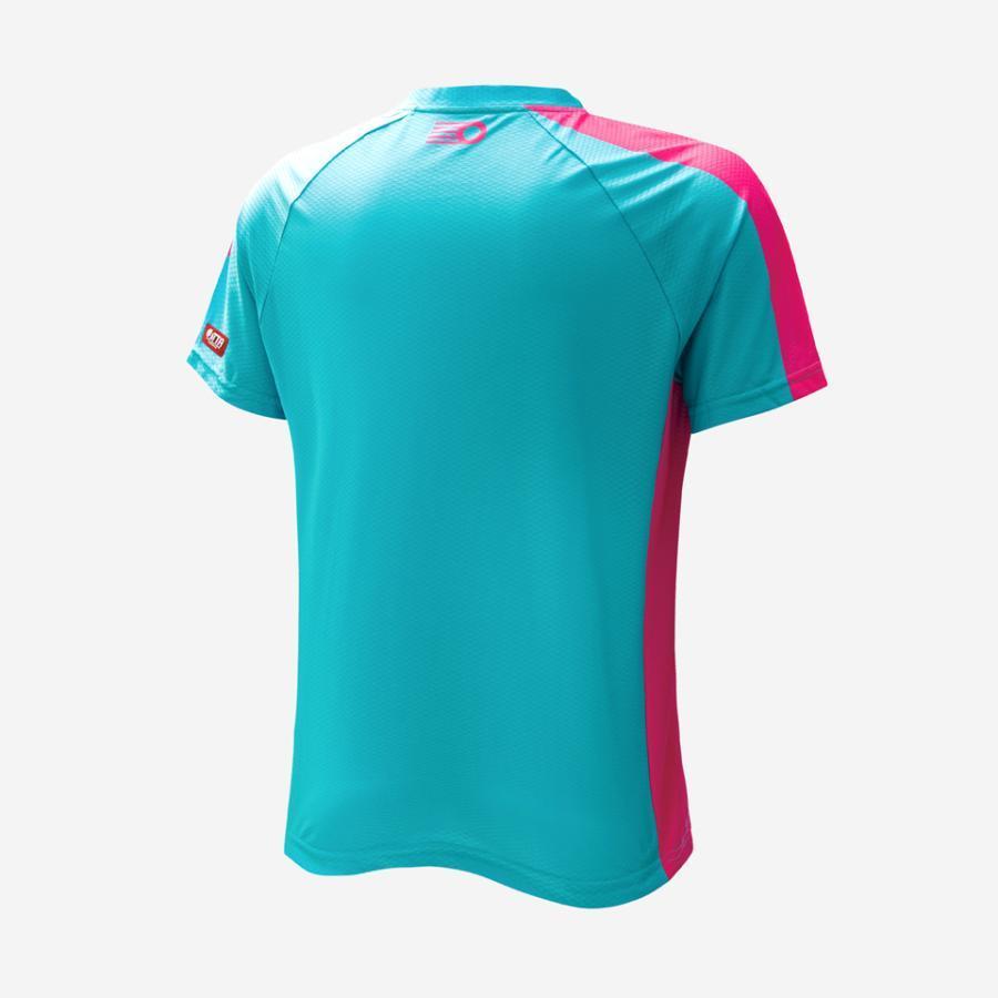 日本卓球協会公認4 月発売ルシアン絶妙なコントラスト2 色 / ポリエステル 90% ポリウレタン 10%サイズ : XS / S / M / L / XL / 2XLイタリア製の生地で、ジャカードのオープンメッシュスパンデックスで作られています。吸汗機能により、プレー中もドライな状態を保ちます。三日月形のジャカード菱形パターンのオープンメッシュスパン素材を使用しています。この生地は、イタリアおよびヨーロッパで最も革新的で重要な繊維生産地域として知られるコモ地方の工場で生産された、最高級の機能性ファブリックです。* 広告付きユニフォームの注意事項広告付きのユニフォームの為、中体連・高体連・国体など一部の試合で着用できない場合があります。