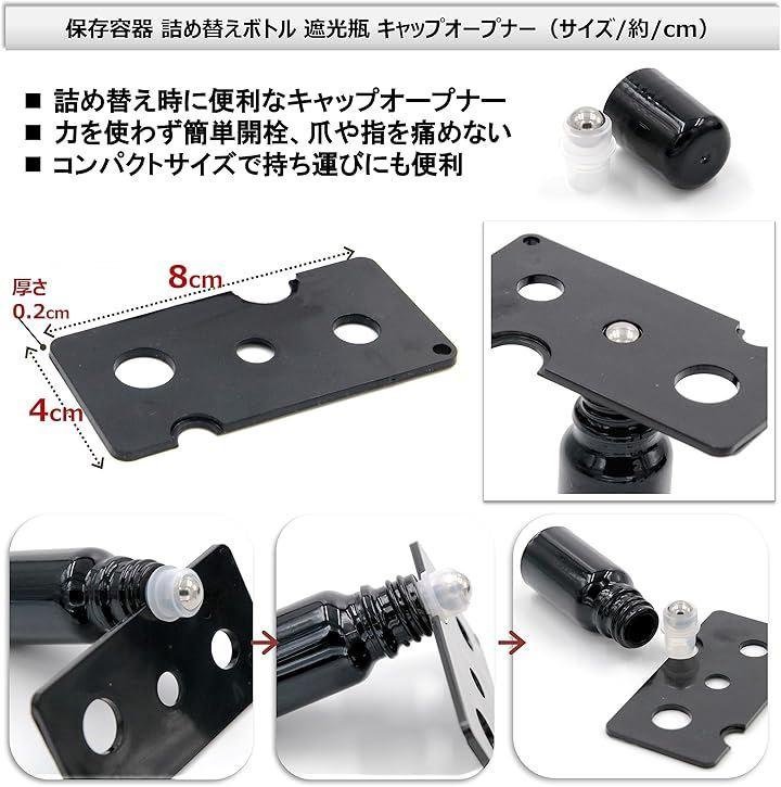 小分け瓶の中栓は付属の専用オープナーを利用して綺麗に外れるので詰め替えも簡単。