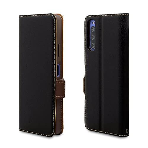 Xperia 10IV(SO-52C/SOG07) 薄型手帳ケース サイドマグネット ブラック×ダークブラウン 6959XP104BO