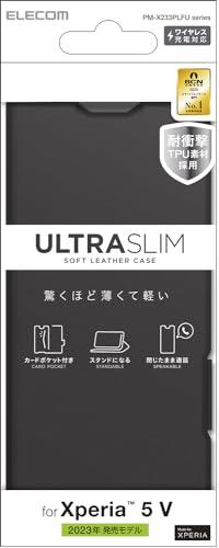 Xperia 5 V ( SO-53D / SOG12 ) ケース レザー カバー 手帳型 マグネット フラップ 衝撃吸収 超軽量 薄型 ワイヤレス充電可 スタンド機能付 UltraSlim ブラック