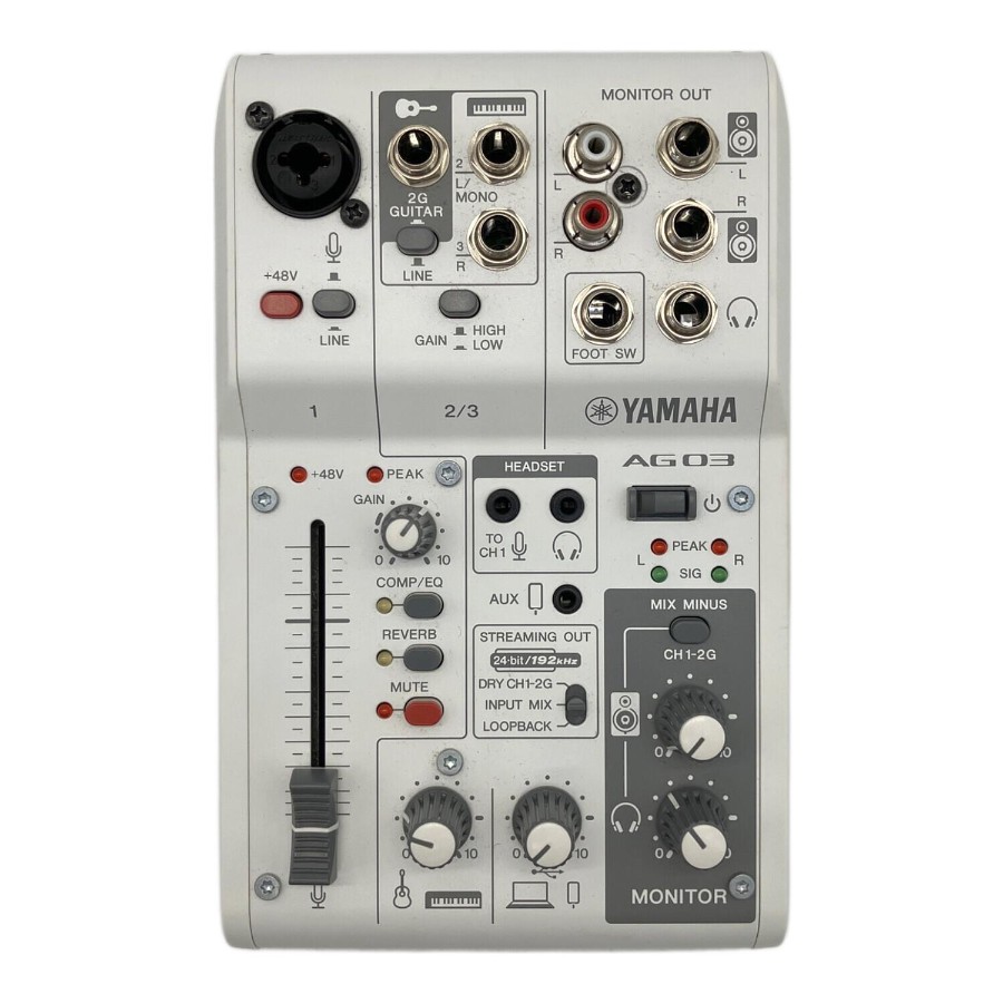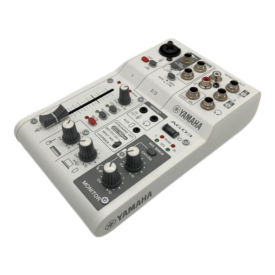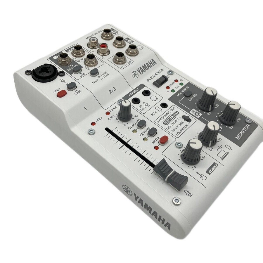 ■商品状態程度B:通常程度の使用感があるお品物こちらの商品は小キズやヨゴレ、若干の使用感などが見受けられます。また店頭にて展示販売を行っている為、記載に無いキズ、ヨゴレなどが見受けられる場合がございます。■商品説明ブランド : YAMAHA(ヤマハ)アイテム名: ライブストリーミングミキサー型番 : AG03MK2(ブラック:B / ホワイト:W)発売年 : 2022年タイプ/形状: USBオーディオインターフェース搭載 3チャンネルミキサー入力端子 : CH1: コンボジャック(XLR/TRS) / CH2: ギター(Hi-Z)/ライン / CH3: スマートフォン(4極ミニ)出力端子 : 3.5mmヘッドホン / 6.3mmヘッドホン / スピーカーモニター / USB-C量子化ビット数: 最大 24-bitサンプリング周波数: 最大 192kHz■付属品本体のみ■その他必ず、商品注文される前に店舗情報に記載している注意事項をご確認ください。