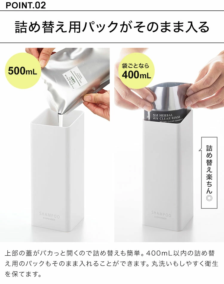■対応サイズ詰め替え用パック:400mL以内の物