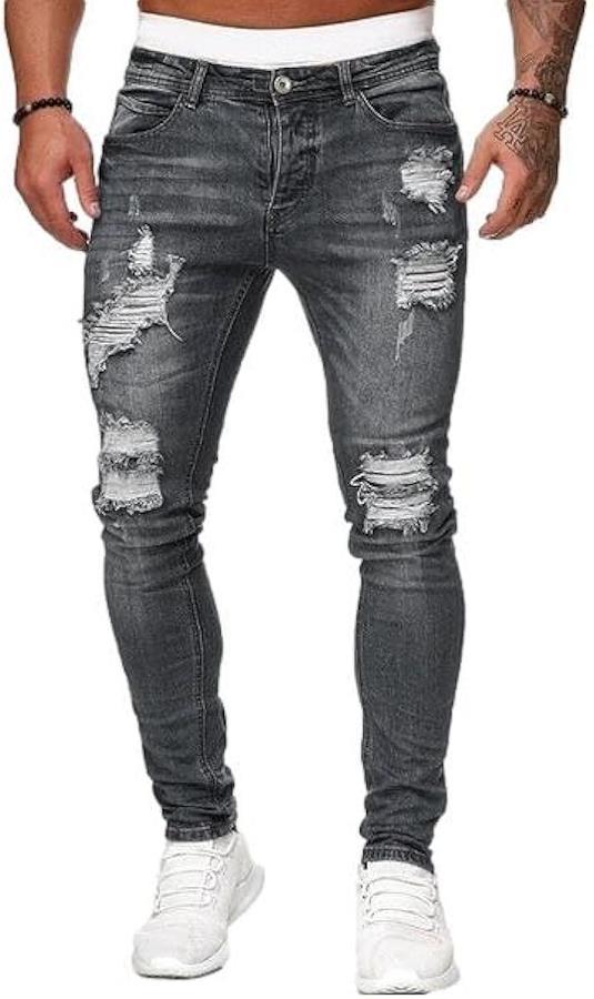 ダメージ加工を施したストレッチ性バツグンのスキニーダメージパンツ クラッシュ部分をさらにリペア(修繕)加工にすることで、こなれた味のあるデザインになっており膝や太ももに施したダメージ加工がコーデのポイントに。