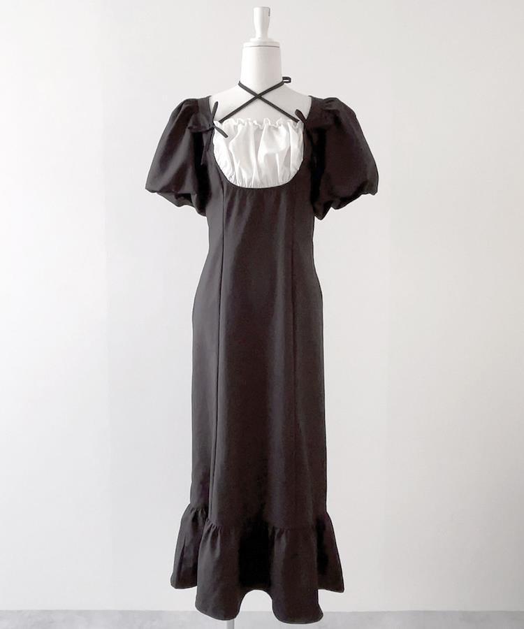 すっきりとした首元のデザインで甘すぎず、大人過ぎないちょうどいいバランス。