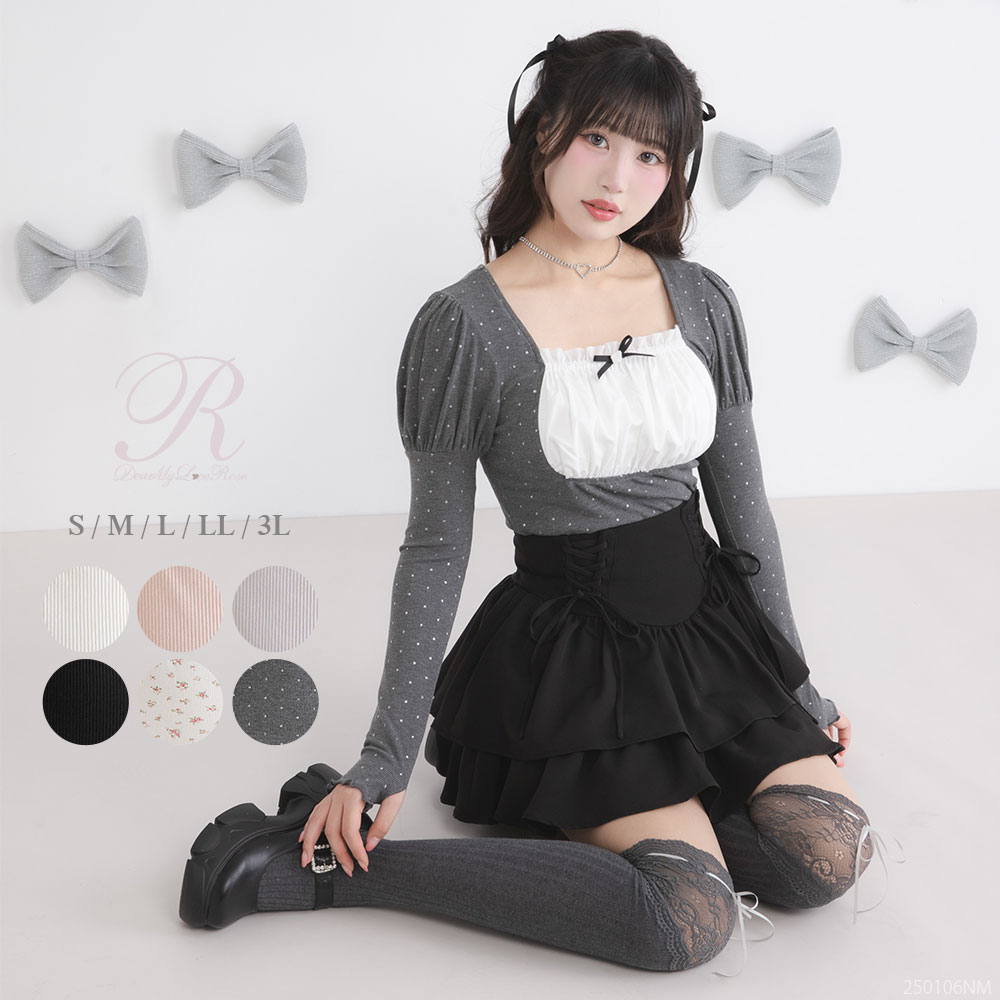 胸元のバラ付リボンが上品で可愛く、コーデのアクセントになってくれるアイテムです!