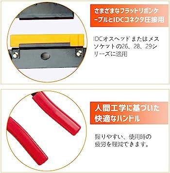 【商品仕様】モデル:YTH214;材質:高炭素鋼+プラスチック;重量:約496g。【材質】高品質の鋼でできており、高硬度で耐久性に優れています。【多機能】さまざまなフラットリボンケーブルとIDCコネクタ圧接用。IDCオスヘッドまたはメスソケットのすべてのPCアクセサリ26、28、および29シリーズで動作します。【握りやすい】人間工学に基づいた快適なハンドルにより、使用時の疲労を軽減できます。 圧着部分は平行に動く構造で片寄って圧着するなど失敗がありません。【品質保証】本店の商品は出荷前に全ての商品の検品を行っておりますのでご安心して購入ください。万が一製造上の原因による不良品がありましたら、ご連絡を頂けください。弊店はお客様のご問題を解決するまで最善を尽かしております。
