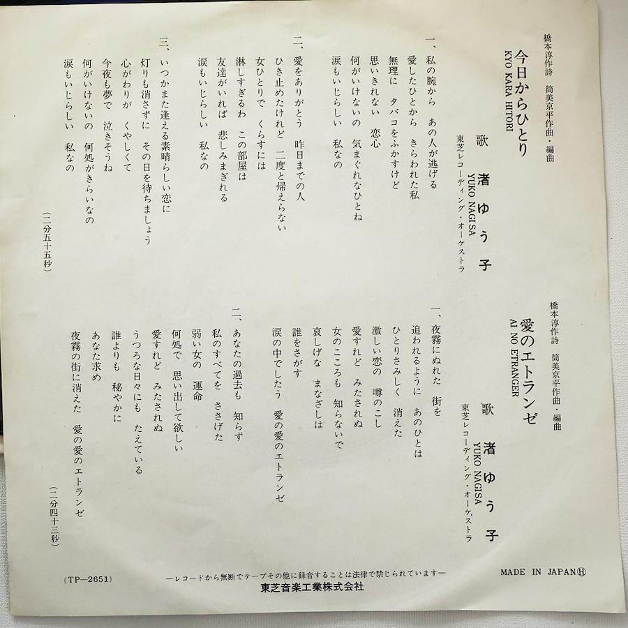 Yuko Nagisa: From Today Alone Love's Etranger EP Record 7-inch Single Extended Play *7227
