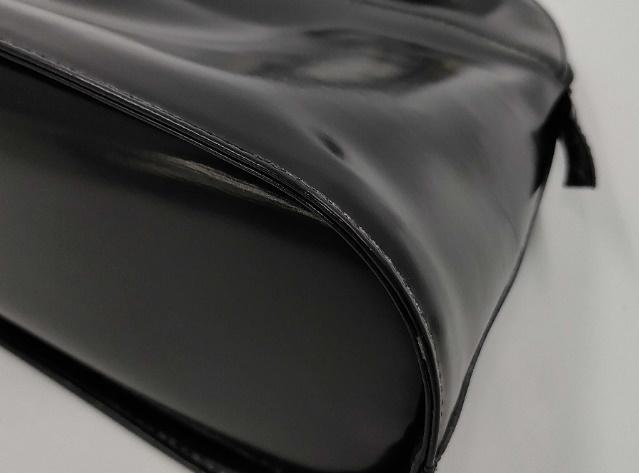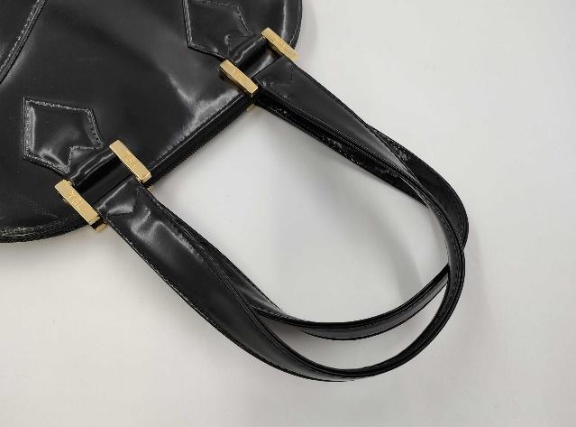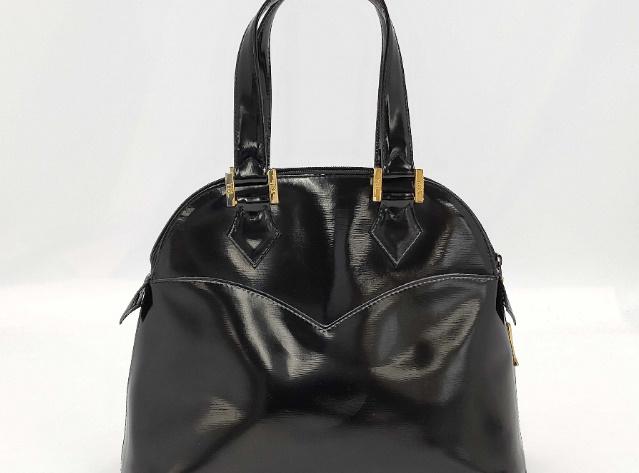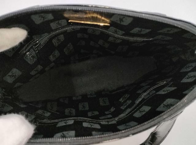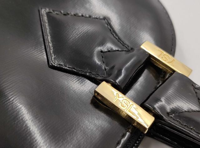 エレガントな艶感が魅力のYves Saint Laurent(サンローラン)のハンドバッグ。上品なブラックエナメルにゴールド金具が映えるラグジュアリーなデザインです。シンプルながら存在感があり、フォーマルからカジュアルまで幅広く活躍します。