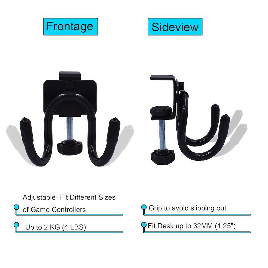 デスクマウントゲームコントローラー - ゲームコントローラーは含まれていません。 PS3/PS4/PS5/Xbox 360/Xbox One/S/X/Elite/Series S/Series Xコントローラー、Proコントローラーなどに適しています。デスクに害を与えません - クランプはEVAパッドで取り付けられ、スクリュークランプもゴムキャップで取り付けられています。 デスクやメガネに傷をつけません。 デスクペイントに3月はありません。厚さ32mm(1.25インチ)までの平らな表面にフィットします。 32mm (1.25インチ) 以上の曲面や厚い表面には適していません。最大1kg (2ポンド)、PS3/PS4/PS5/Xbox 360/Xbox One/S/X/Elite/Series S/Series Xコントローラー、Proコントローラーに適しています。ほとんどのゲームコントローラーで調節可能 - ラックの先端は調節可能で曲げられます - 市場のほとんどのコントローラーに適合します。 ほとんどの古いレトロなコントローラーに適しています。 PS4コントローラー。机の上の汚れを取り除き、飲み物に近づけてください。