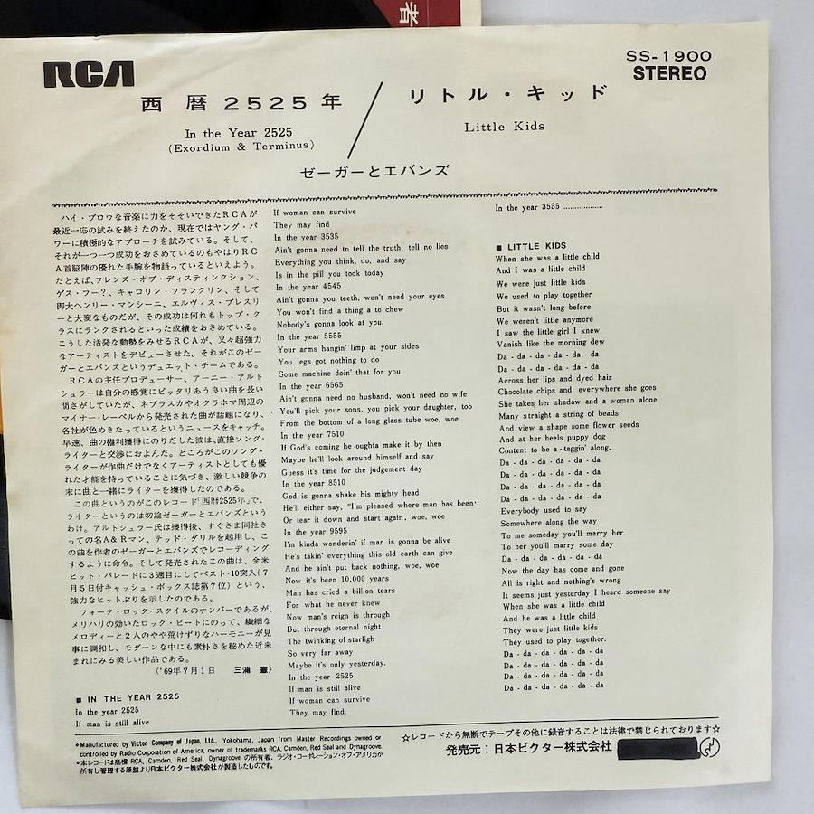 Zager and Evans 2525 AD Little Kids EP Record 7-inch Single Extended Play