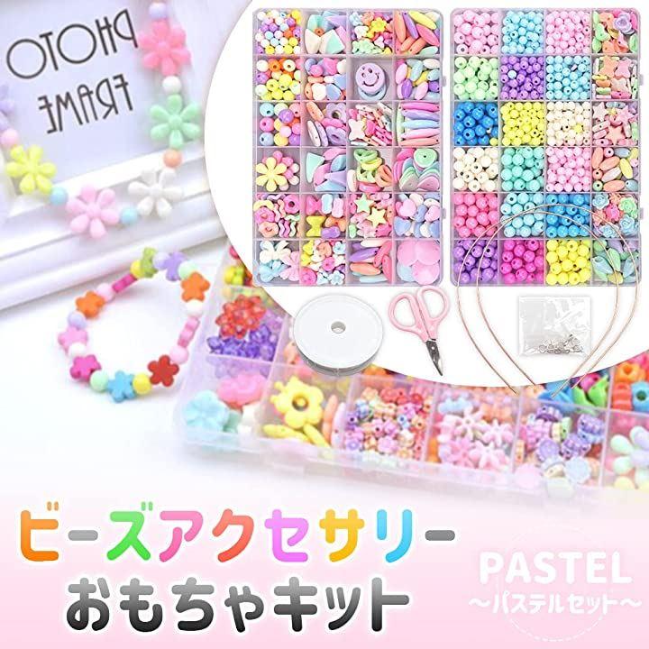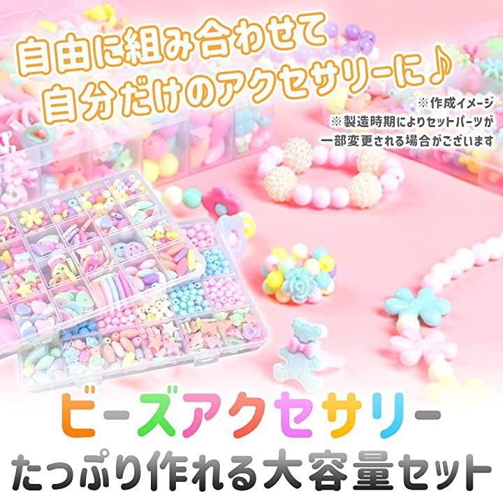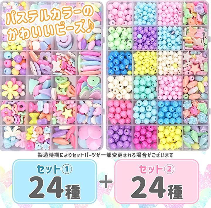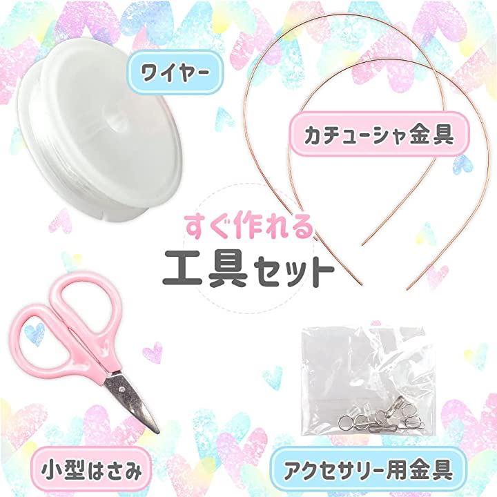 ・「セット内容」ビーズアクセサリーx48種 カチューシャ金具x4個 ワイヤーx2巻 小型はさみx2点 アクセサリー用金具x2セット 収納ケースx2点 *製造時期により、セットパーツが一部変更される場合がございます。