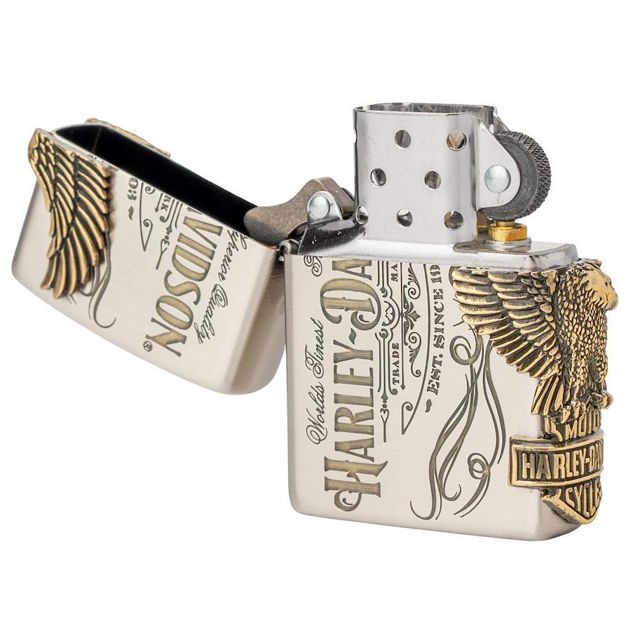 3営業日以内に発送≪新品未開封品≫:●1932年創業、1933年の発売以来ほとんど変わらない基本構造で高い耐久性と耐風性が魅力のオイルライター●アメリカのオートバイメーカー「ハーレーダビッドソン」の日本限定デザインモデル●メタルパーツやエッチングでハーレーダビッドソンらしいさをデザイン●モチーフのカラーは、シルバーとブラスの2種類